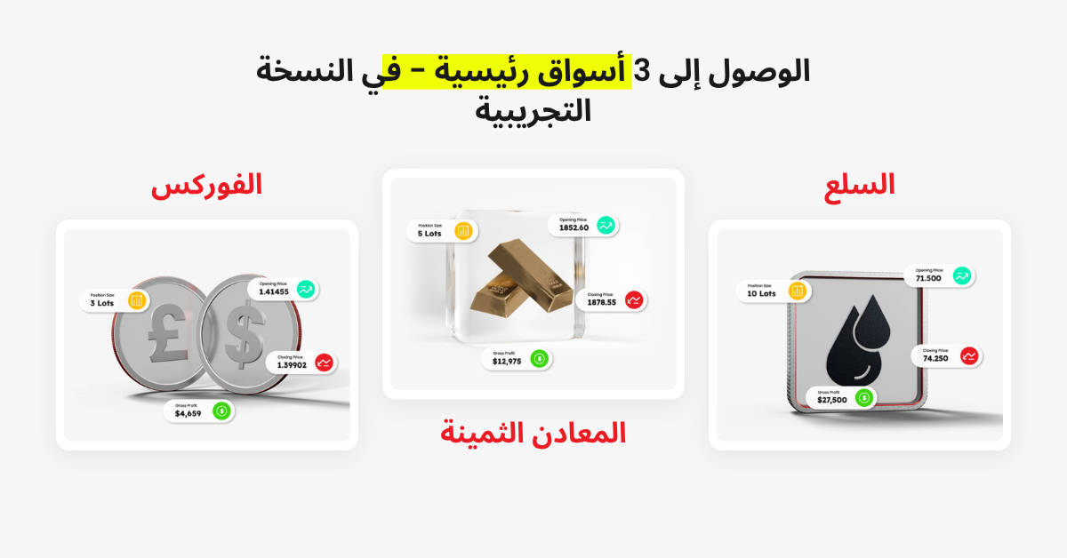 - نفس ميزات المنصة المتوفرة في الحساب الحقيقي.