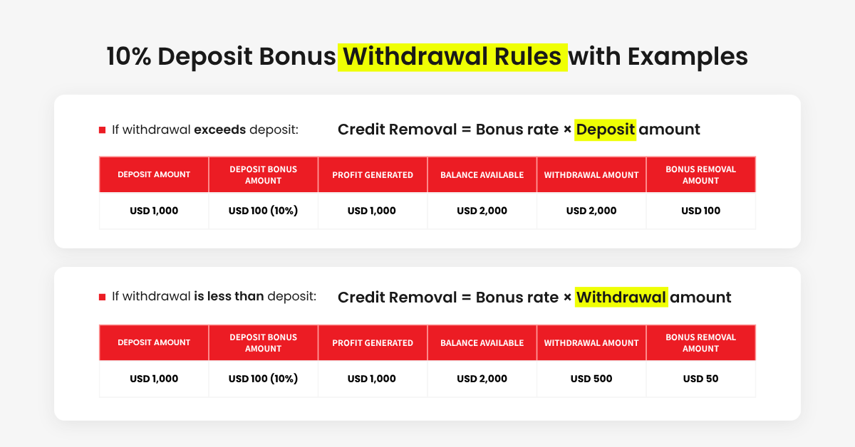 👉 Credit Removal = Bonus rate × Deposit amount