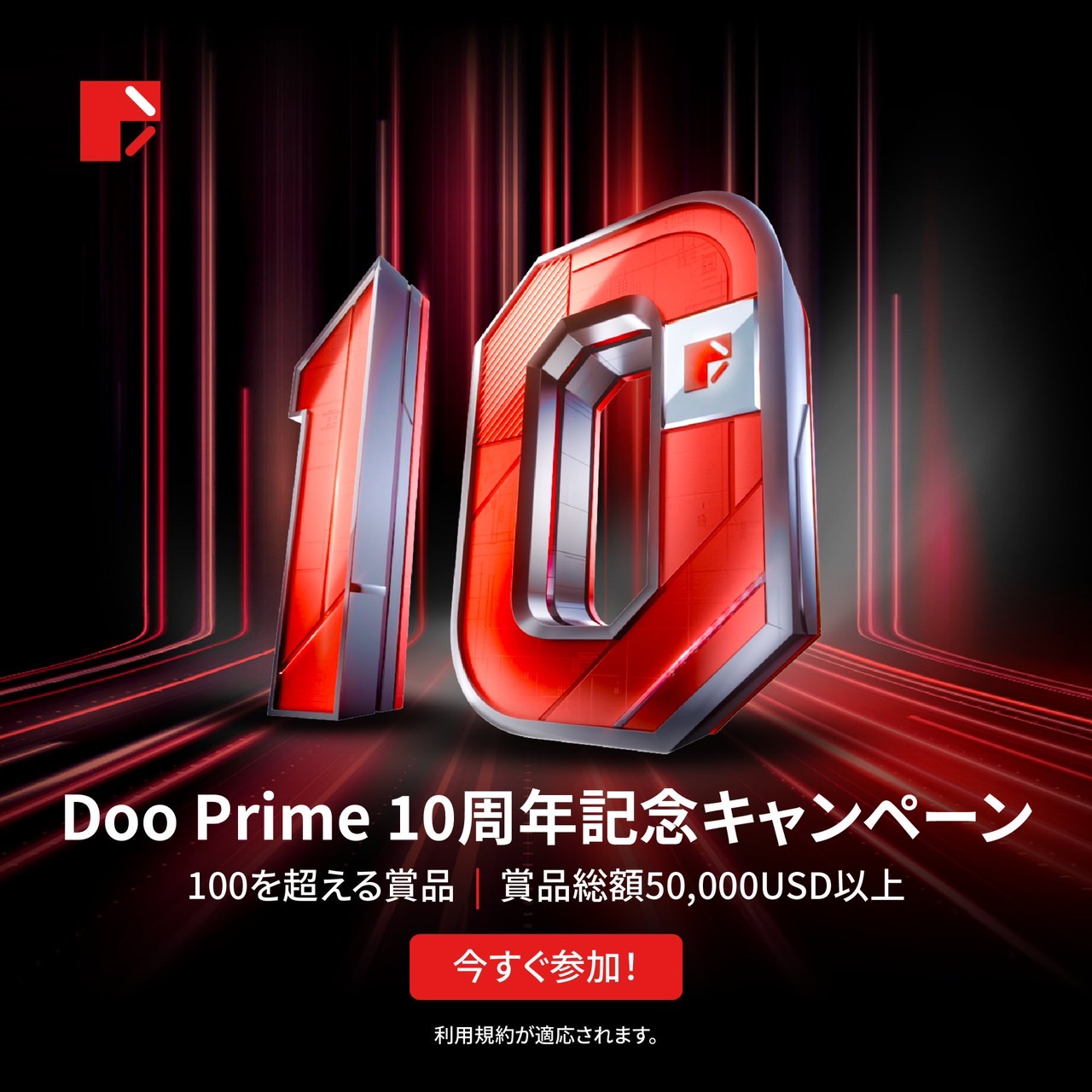 Doo Primeは創業10周年を迎え、これを記念して特別なトレードコンテストを開催します。参加者は入金額や取引量に応じて、豪華な賞品を手に入れるチャンスがあります。