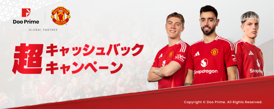 Doo Prime 前回の春のキャッシュバックキャンペーンに寄せられたフィードバックをもとに、さらに魅力的な「超キャッシュバックキャンペーン」を開始いたします!今回のキャンペーンでは、最大52万円のキャッシュバック、または香港で開催されるマンチェスター・ユナイテッド観戦付きパッケージ旅行(60万円相当)を特典としてご用意しています。