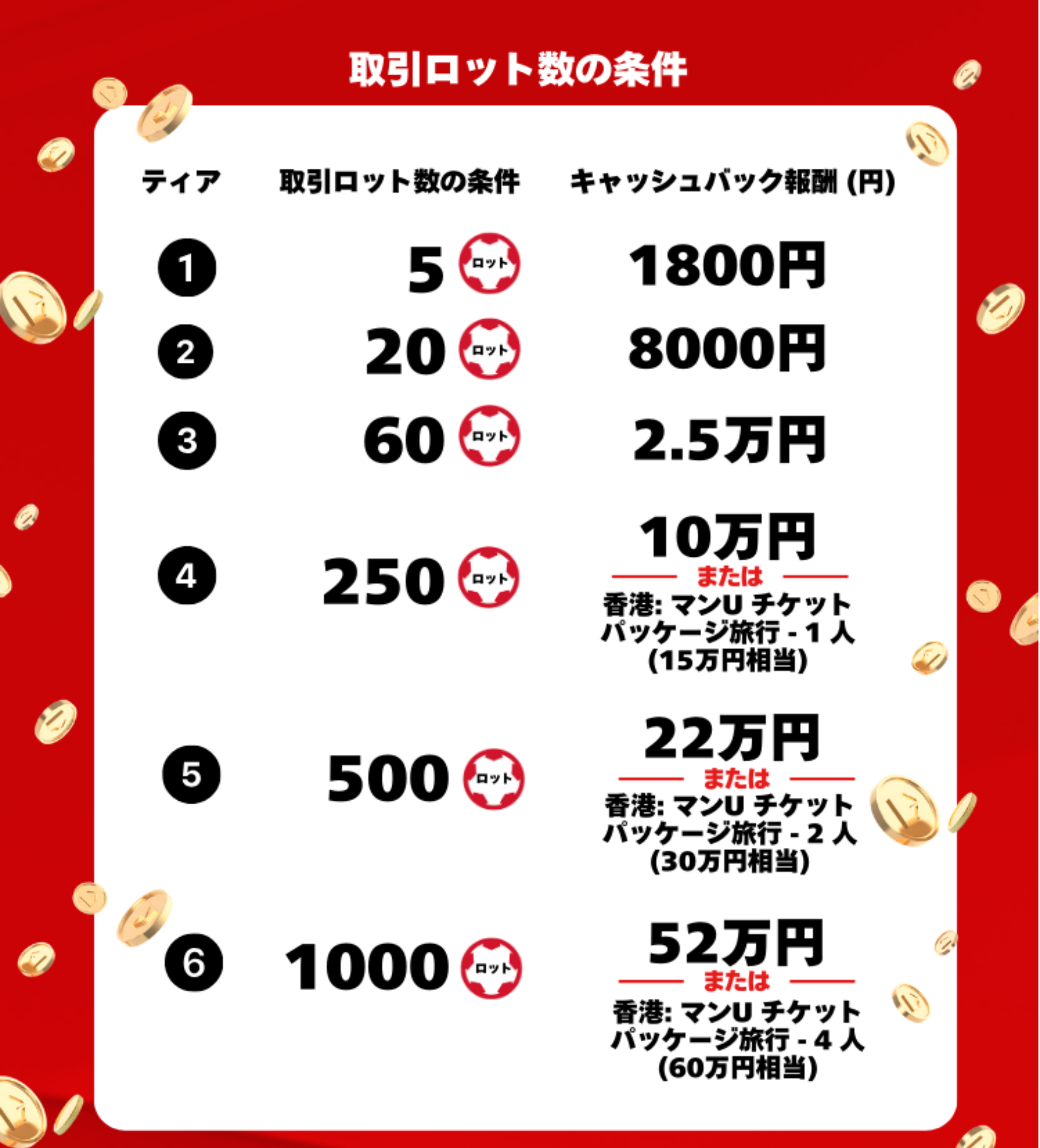 取引ロット数に応じた特典内容
