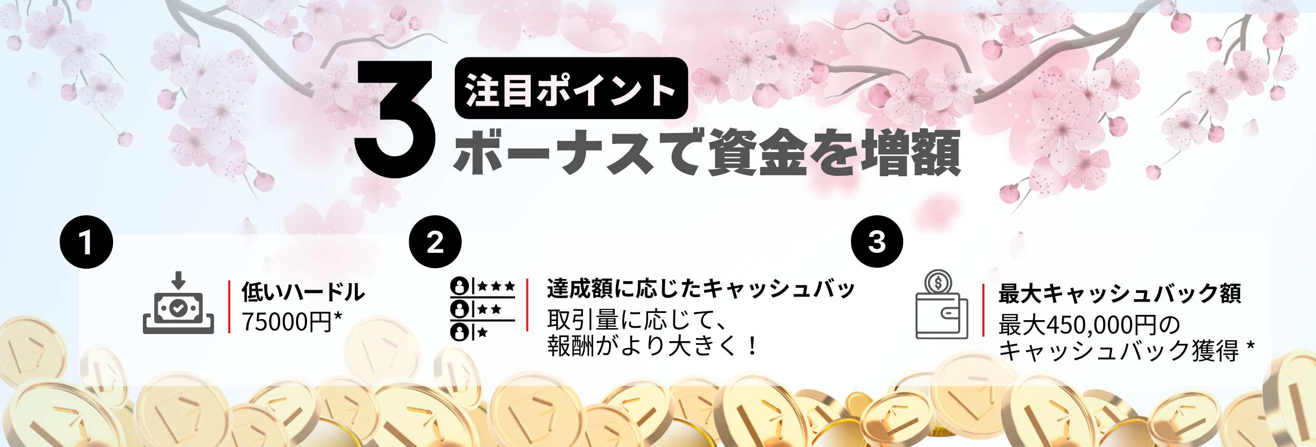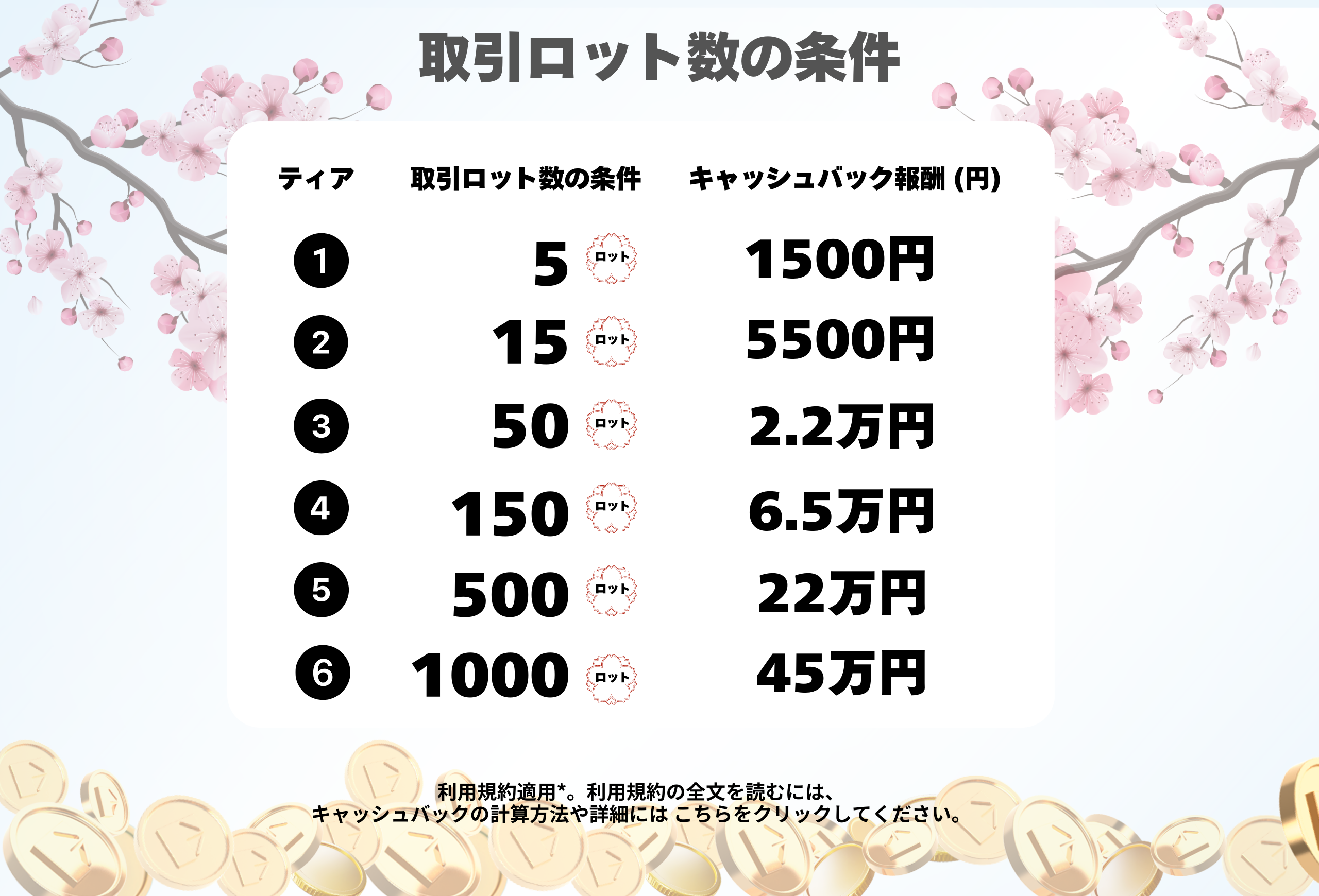 春の訪れとともに、たくさん取引してキャッシュバックを獲得しましょう!