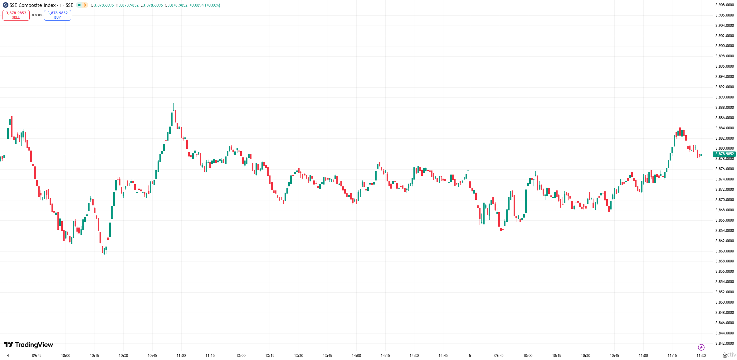 Shanghai Composite +0.08% at 3,878.99