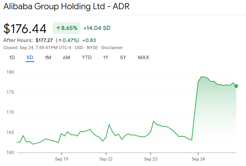 阿里巴巴股价大涨近一成,宣布携手英伟达加码 AI 布局