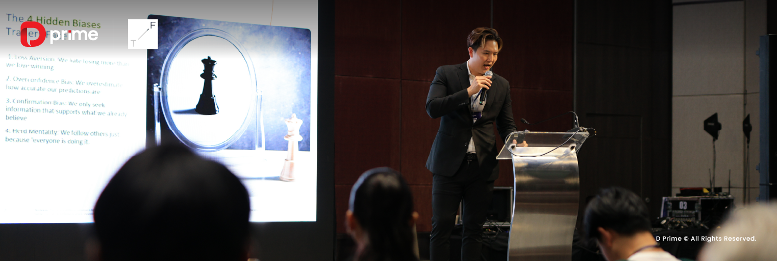 本次展会备受瞩目的环节之一,是由主办方特邀的 D Prime 市场专家 Black Krittharit 带来的主题演讲《金融决策心理学:突破认知偏差,提升交易效能》。作为 D Prime 资深分析师团队的代表,Black 凭借扎实的理论基础和丰富的实战经验,深入解析了认知偏差与情绪波动对交易决策的影响,并系统性地提供了应对策略。