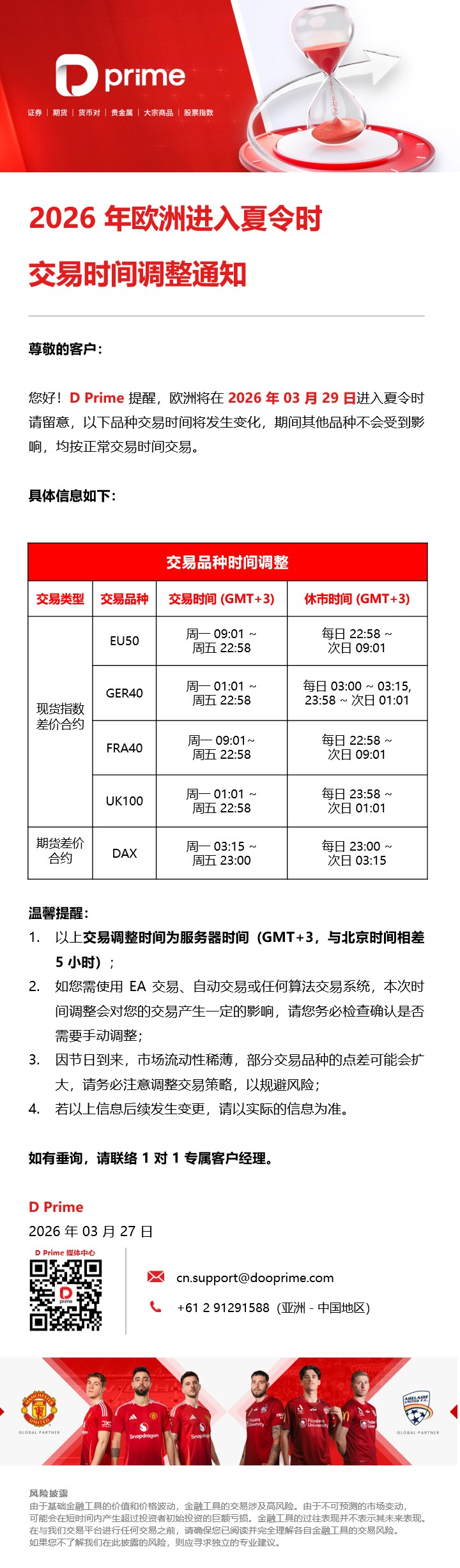 2026 年欧洲进入夏令时交易时间调整通知