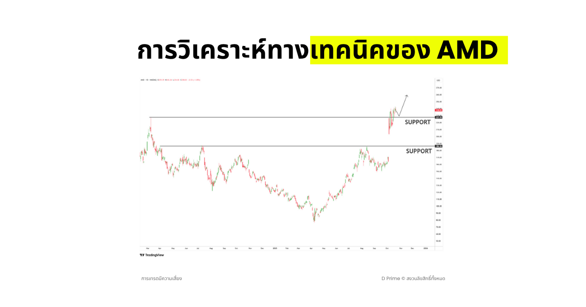 จากมุมมองทางเทคนิค หุ้น AMD ได้ทะลุแนวต้านสำคัญบริเวณ 180 ดอลลาร์ ขึ้นสู่ระดับสูงสุดใหม่ โดยได้รับแรงหนุนจากปริมาณการซื้อขายที่แข็งแกร่ง