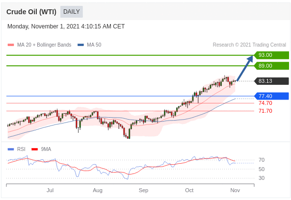Các vị thế mua trên 77,40 với mục tiêu là 89,00 & 93,00 trong phần mở rộng.