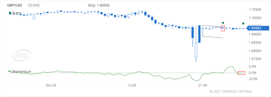 -0.00019 (19 pips) thay đổi giá kể từ Sự kiện kỹ thuật ở mức 1.69401