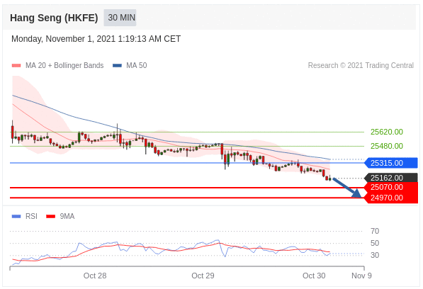 Các vị thế bán dưới 25315,00 với mục tiêu là 25070,00 & 24970,00 trong phần mở rộng.