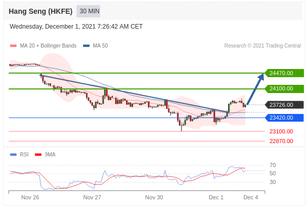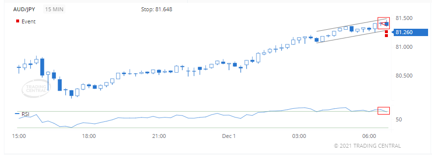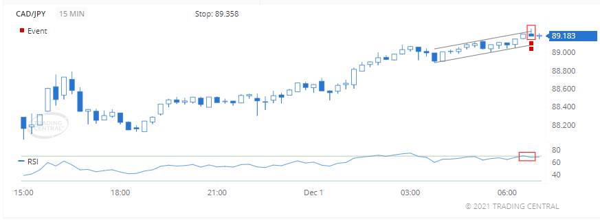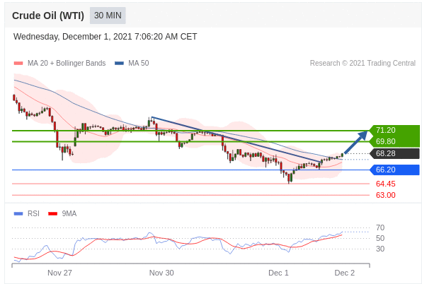 Chỉ số RSI giảm xuống dưới 70 vào ngày 01 tháng 12 năm 2021 lúc 06:45 GMT, cho chúng ta biết giá đang bắt đầu giảm trở lại sau khi bị mua quá mức.