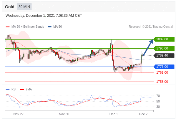 Các vị thế mua trên 1776,00 với mục tiêu là 1798,00 & 1809,00 trong thời gian mở rộng.
