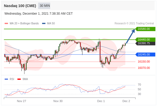Các vị thế mua trên 16245,00 với mục tiêu là 16440,00 & 16580,00 trong phần mở rộng.