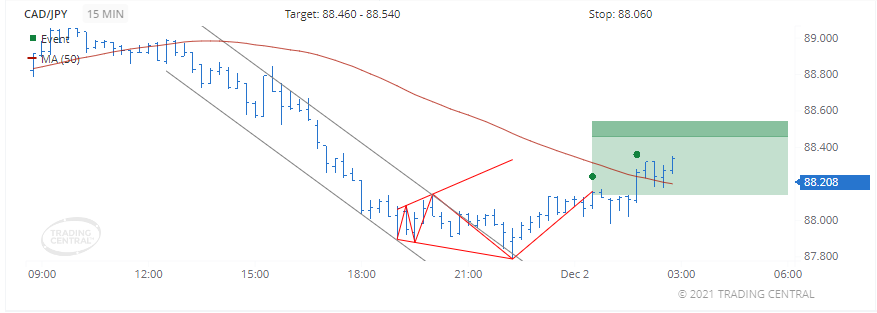 Chúng tôi đã tìm thấy một mẫu có tên Megaphone Bottom vào ngày 02 tháng 12 năm 2021 lúc 00:30 GMT trên biểu đồ 15 phút, cung cấp giá mục tiêu cho tối đa 12 giờ trong phạm vi 88.460 đến 88.540.