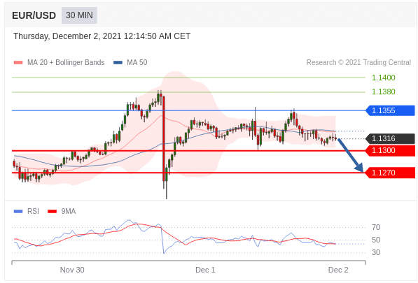 Việc phá vỡ dưới 1,1300 sẽ kích hoạt mức giảm xuống 1,1270.