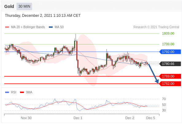 Các vị thế bán dưới 1792,00 với mục tiêu là 1769,00 & 1762,00 trong phần mở rộng.