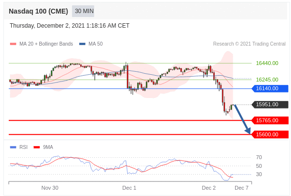 Các vị thế bán dưới 16140,00 với mục tiêu là 15765,00 & 15600,00 trong phần mở rộng.
