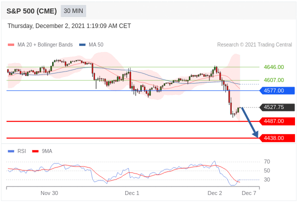 Các vị thế bán dưới 4577,00 với mục tiêu là 4487,00 & 4438,00 trong phần mở rộng.