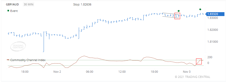 CCI đã kích hoạt tín hiệu tăng giá vào ngày 03 tháng 11 năm 2021 lúc 02:30 GMT bằng cách vượt qua mức + 100%