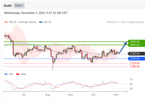 Các vị trí mua trên 1750,00 với mục tiêu là 1835,00 & 1855,00 trong thời gian gia hạn.