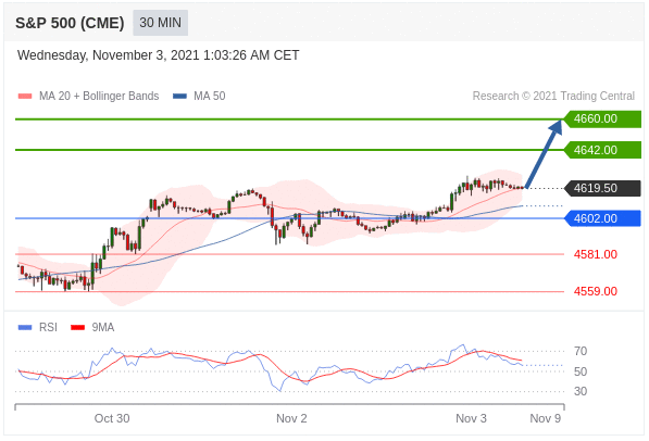 Các vị thế mua trên 4602,00 với mục tiêu là 4642,00 & 4660,00 trong phần mở rộng.