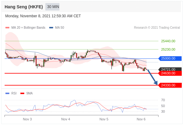 Các vị thế bán dưới 25000,00 với mục tiêu là 24630,00 & 24330,00 trong phần mở rộng.