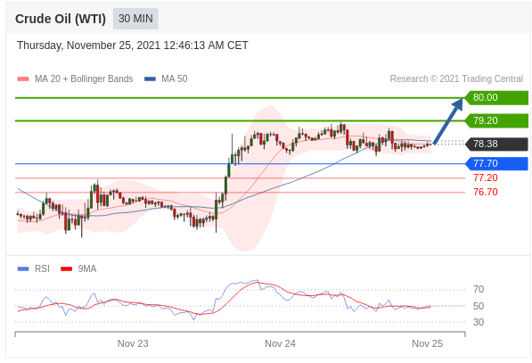 Các vị thế mua trên 77,70 với mục tiêu là 79,20 & 80,00 trong phần mở rộng.