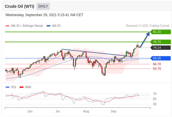 Các vị thế mua trên 69,35 với mục tiêu là 76,70 & 81,20 trong phần mở rộng.