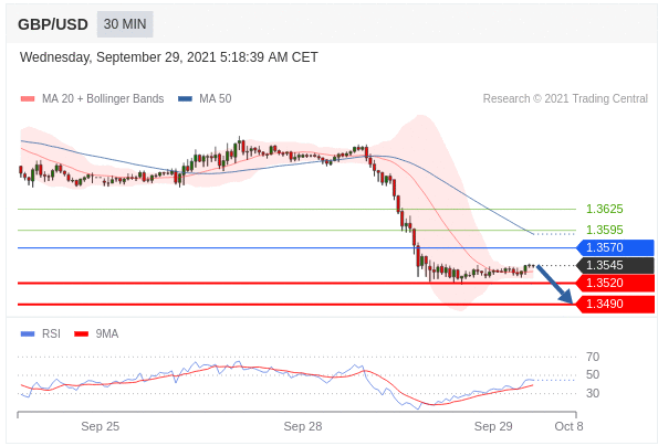 Việc phá vỡ dưới 1,3520 sẽ kích hoạt mức giảm xuống 1,3490.