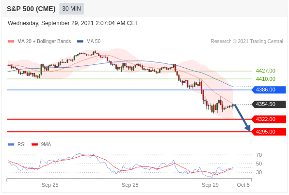 Các vị thế bán dưới 4386,00 với mục tiêu là 4322,00 & 4295,00 trong phần mở rộng.