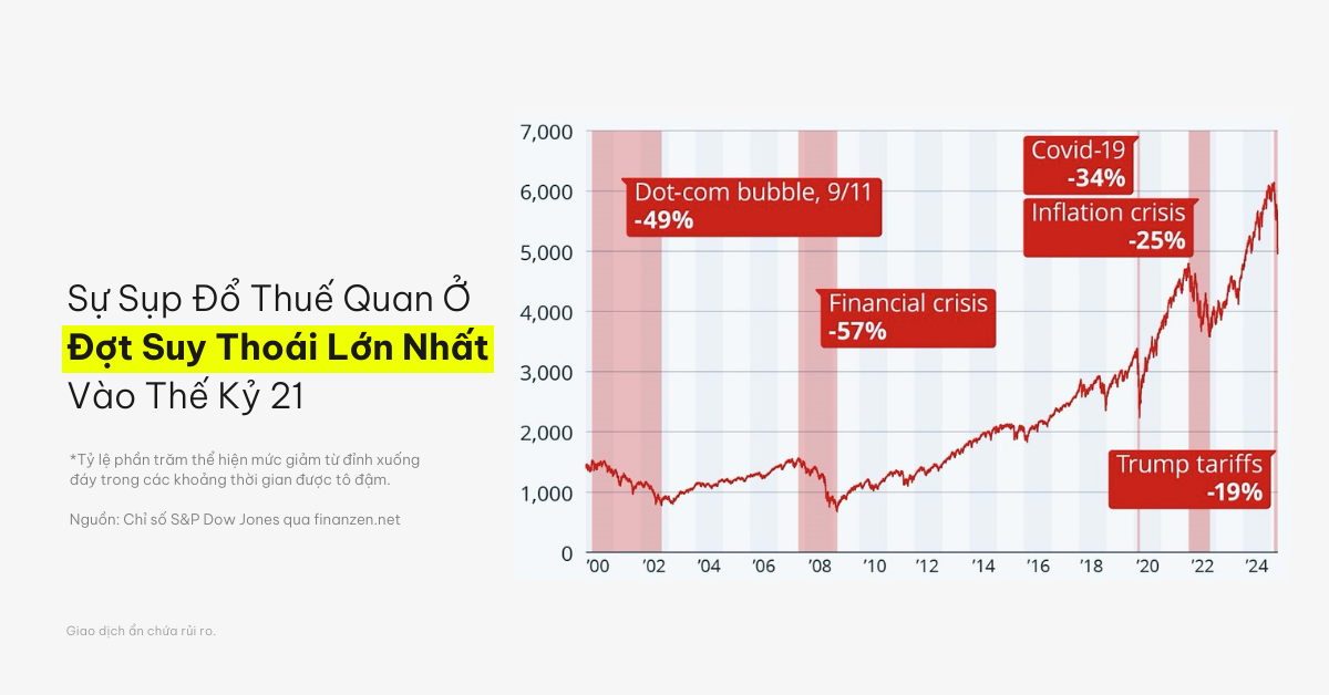 Dữ liệu lịch sử cho thấy các giai đoạn liên quan đến thuế quan thường trùng với những đợt điều chỉnh đáng kể từ thị trường chứng khoán.