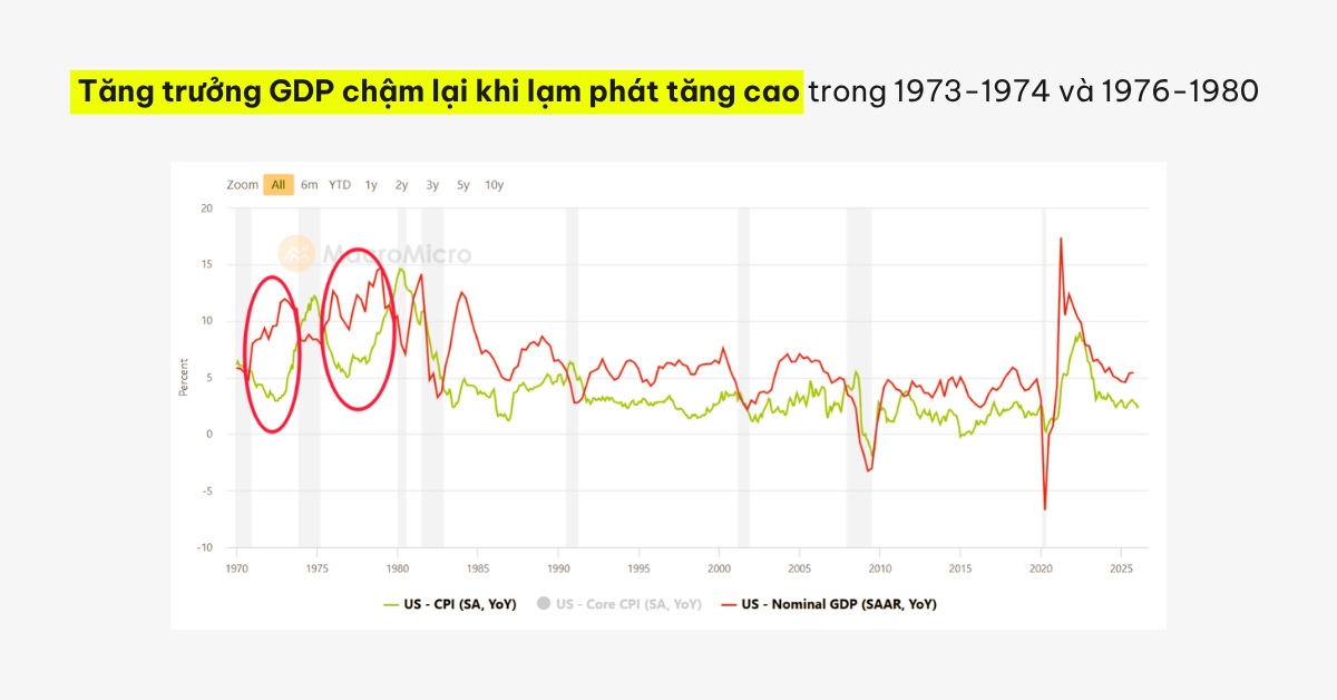 Trong các giai đoạn này, mối quan hệ giữa tăng trưởng và lạm phát bị phá vỡ.