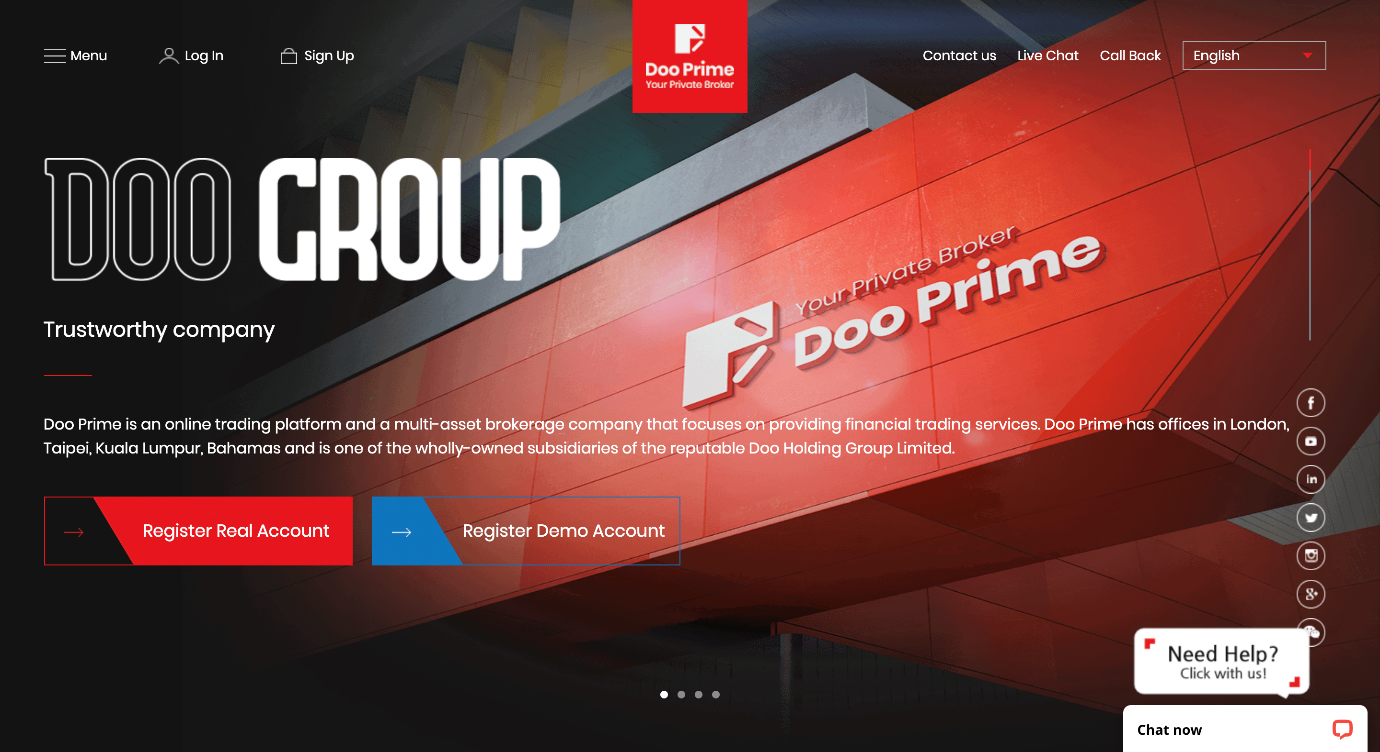 Bước 1 – Truy cập trang chủ của Doo Prime tại https://www.dooprime.com và nhấn Đăng nhập