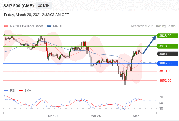 Vào thứ Sáu, S&P 500 (CME) có thể tăng lên 3918,00 – 3938,00, theo phân tích của Trading Central trên Doo Prime.