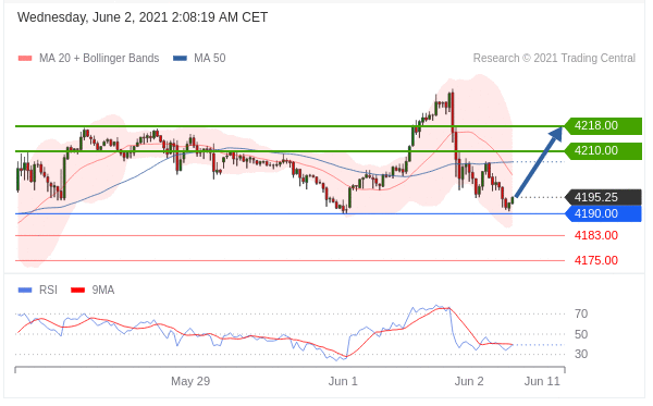 Mức hỗ trợ tại 4190,00 đã hình thành và cho phép ổn định tạm thời.