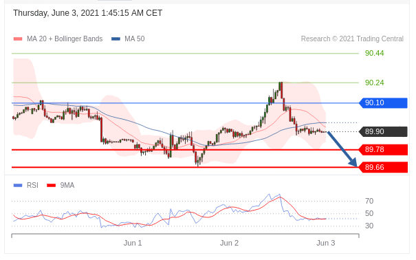 Trên 90.1000, hãy tìm kiếm sự tăng giá hơn nữa với 90.2400 & 90.4400 là mục tiêu.