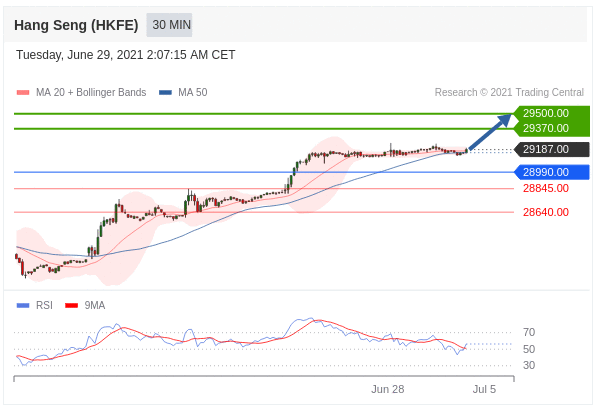 Các vị thế mua trên 28990,00 với mục tiêu là 29370,00 & 29500,00 trong phần mở rộng.