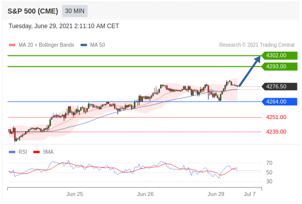 Các vị thế mua trên 4264,00 với mục tiêu là 4293,00 & 4302,00 trong phần mở rộng.