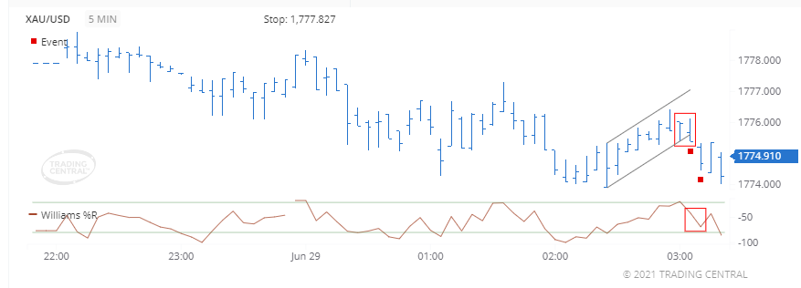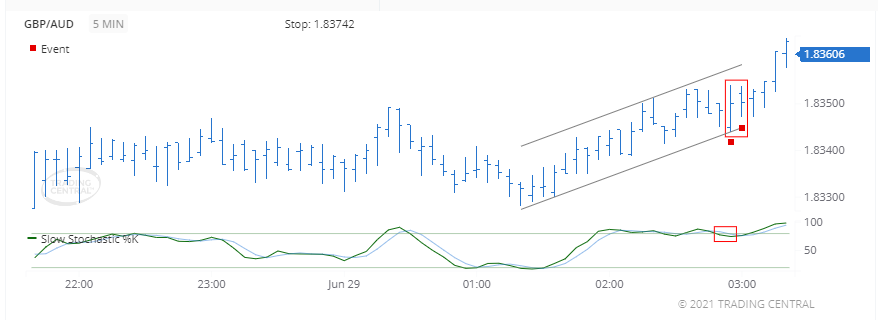 Một sự kiện giảm giá đã kích hoạt cho Slow Stochastics vào ngày 29 tháng 6 năm 2021 lúc 02:55 GMT khi đường %K cắt xuống dưới đường% D. Giá đóng cửa đang giao dịch gần với mức giá thấp hơn của phạm vi giá cao-thấp gần đây, có liên quan đến việc giảm giá.