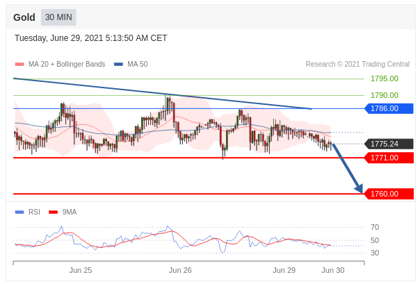 Các vị thế bán dưới 1786,00 với mục tiêu là 1771,00 & 1760,00 trong phần mở rộng.