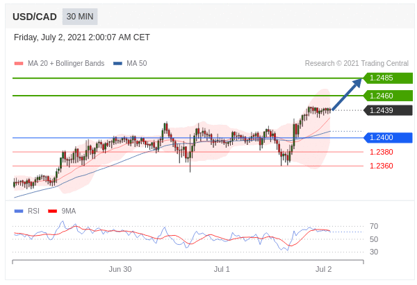 Các vị thế mua trên 1.2400 với mục tiêu là 1.2460 & 1.2485 trong phần mở rộng.