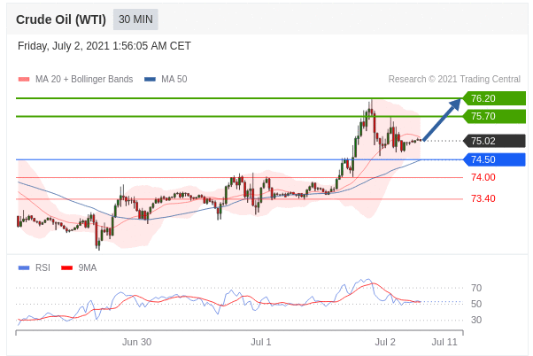Các vị trí mua trên 74,50 với mục tiêu là 75,70 & 76,20 trong phần mở rộng.