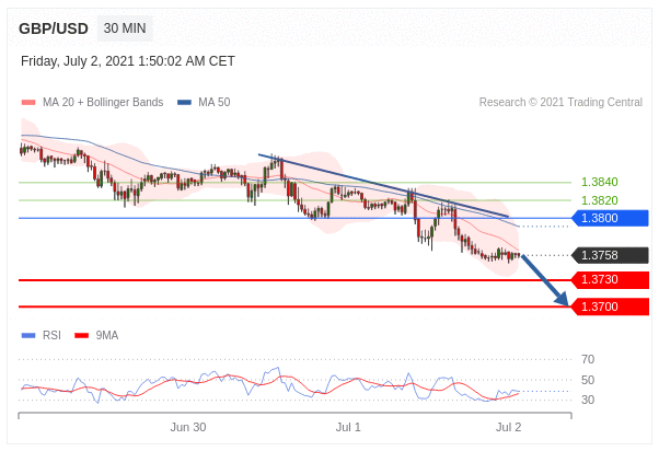 Các vị thế bán dưới 1.3800 với mục tiêu là 1.3730 & 1.3700 trong phần mở rộng.