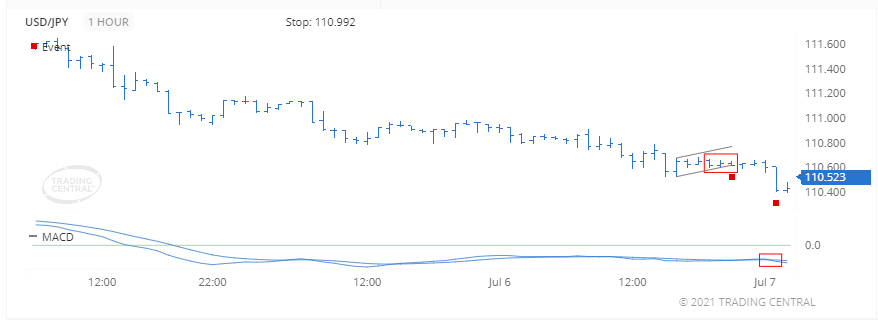 -0.075 (75 pips) thay đổi giá kể từ Sự kiện kỹ thuật ở mức 110.614