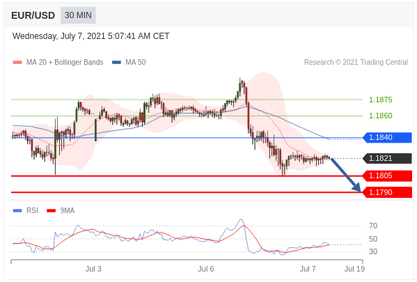 Miễn là vùng kháng cự 1.1840 không bị vượt qua, nguy cơ phá vỡ dưới 1.1805 vẫn còn cao.
