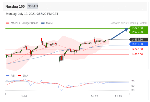 Các vị thế mua trên 14810,00 với mục tiêu là 14970,00 & 15020,00 trong phần mở rộng.