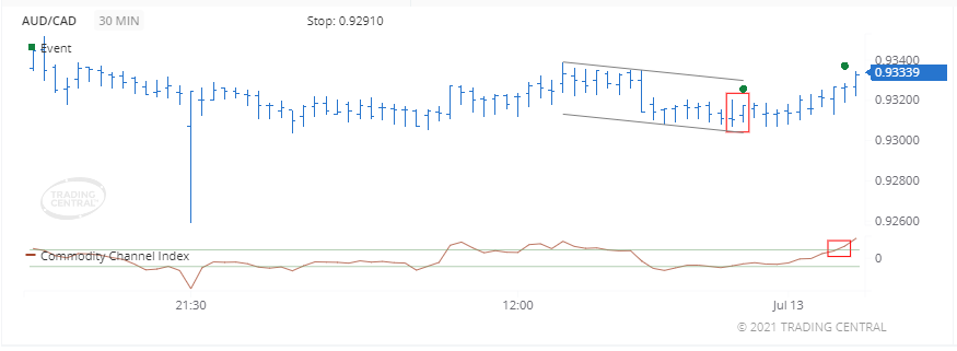 CCI đã kích hoạt tín hiệu tăng giá vào ngày 13 tháng 7 năm 2021 lúc 02:30 GMT bằng cách vượt qua mức + 100%.