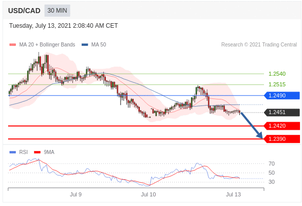 Các vị thế bán dưới 1.2490 với mục tiêu là 1.2420 & 1.2390 trong phần mở rộng.