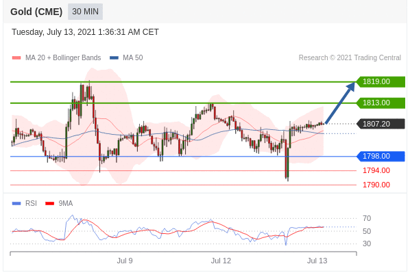 Các vị thế mua trên 1798,00 với mục tiêu là 1813,00 & 1819,00 trong thời gian gia hạn.