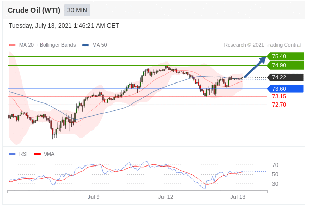 Các vị thế mua trên 73,60 với mục tiêu ở mức 74,90 & 75,40 trong phần mở rộng.